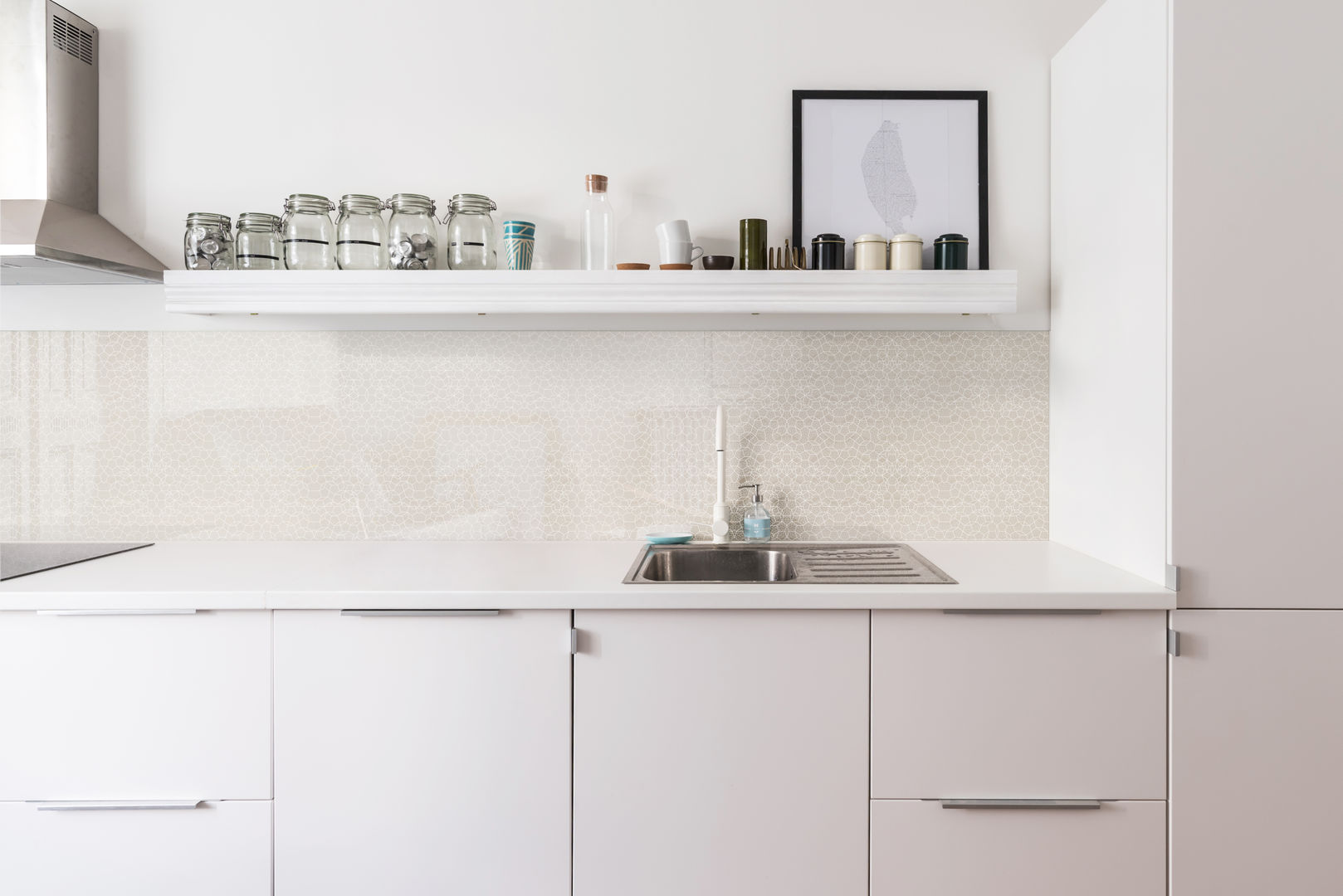 Fényvisszaverés és térnövelés. Áttetsző vagy félig áttetsző változatai optikailag nagyobbítják a teret, ami minden konyhának előnyére válik. Kis alapterületű konyhákban pedig egyenesen kötelező!